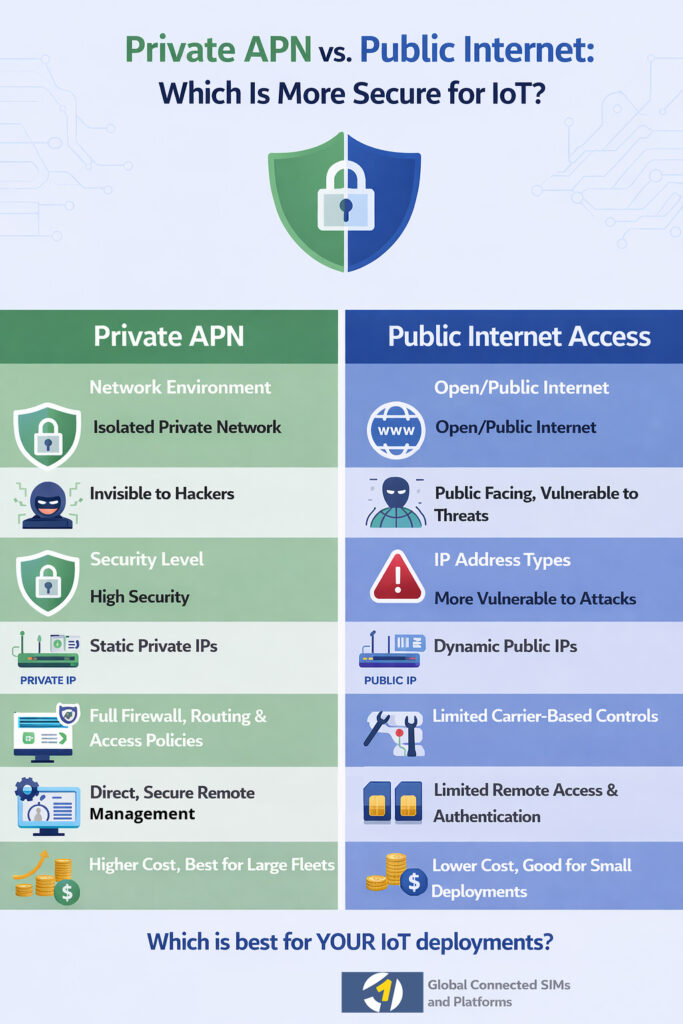 ⚖️ Private APN vs. Public Internet for IoT: Quick Comparison